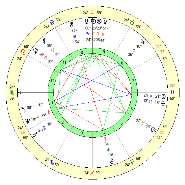 | Sun | 23 Gemini 33 | 23 Gemini 53 | 3 Virgo 22 |