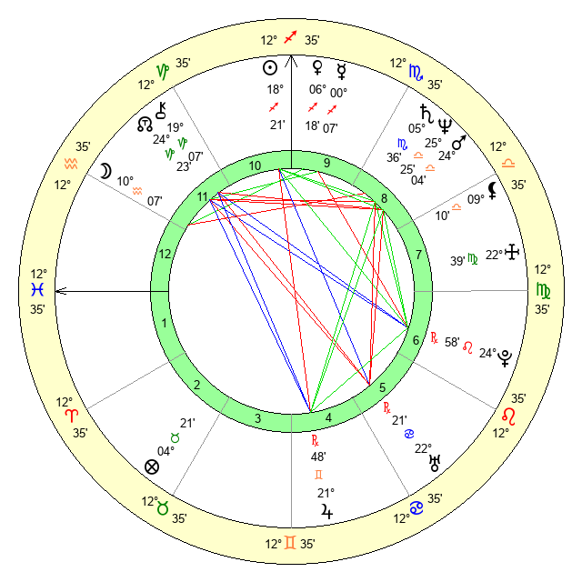 | Saturn | 6 Scorpio 4 | 25 Pisces 12 | 9 Scorpio 51 |