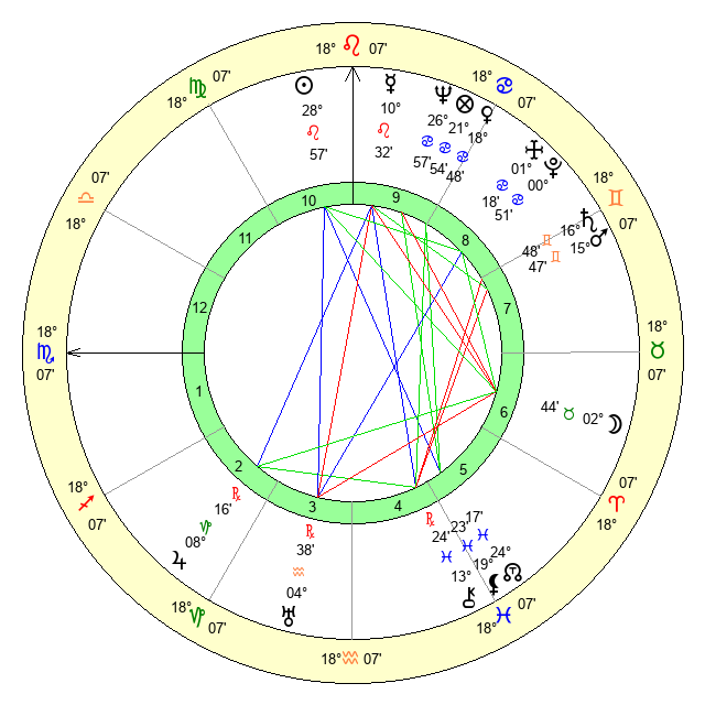 | Mercury | 10 Leo 33 | 11 Leo 50 | 29 Scorpio 15 |