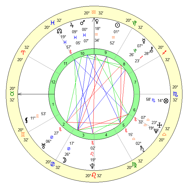 | Moon | 26 Cancer 20 | 12 Scorpio 2 | 18 Aries 56 |