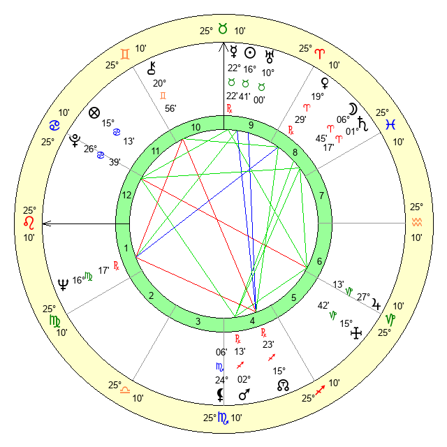 | Moon | 6 Aries 43 | 22 Virgo 58 | 3 Cancer 12 |
