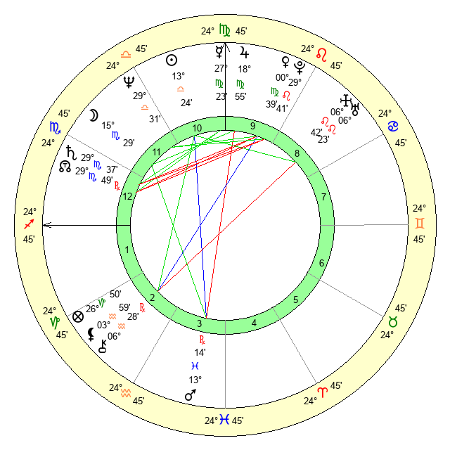 | Neptune | 29 Libra 32 | 0 Aries 23 | 1 Scorpio 54 |