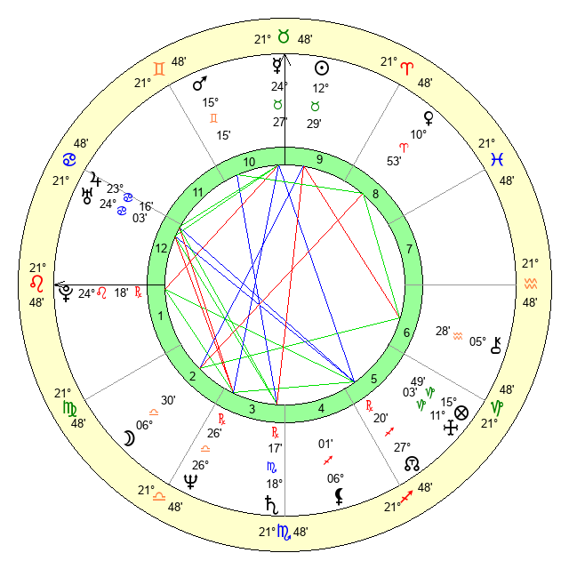 | Moon | 6 Libra 26 | 3 Leo 9 | 17 Aries 33 |