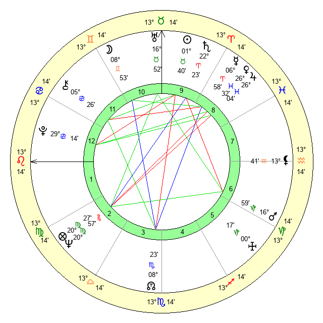 | Moon | 9 Gemini 0 | 22 Aquarius 59 | 5 Leo 56 |