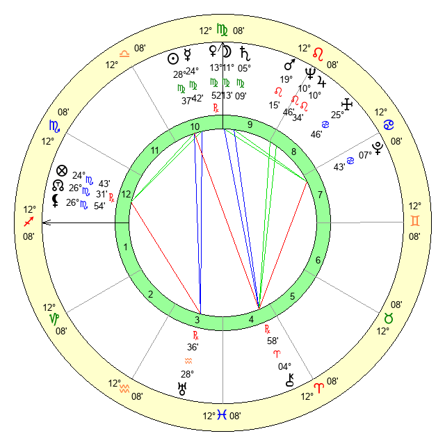 | Moon | 11 Virgo 5 | 9 Libra 47 | 26 Cancer 40 |