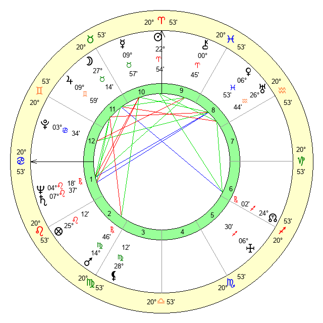 | Sun | 22 Aries 54 | 23 Aries 58 | 5 Leo 41 |