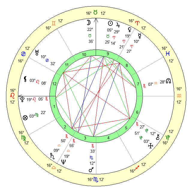 | Moon | 22 Taurus 33 | 6 Aries 0 | 18 Capricorn 0 |