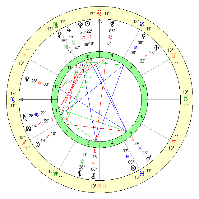 | Mercury | 15 Virgo 47 | 5 Leo 23 | 17 Libra 17 |