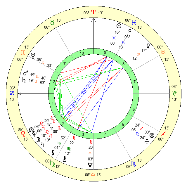 | Neptune | 3 Libra 21 | 29 Pisces 6 | 1 Libra 33 |