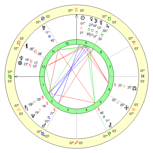 | Sun | 1 Gemini 31 | 1 Gemini 51 | 11 Leo 16 |