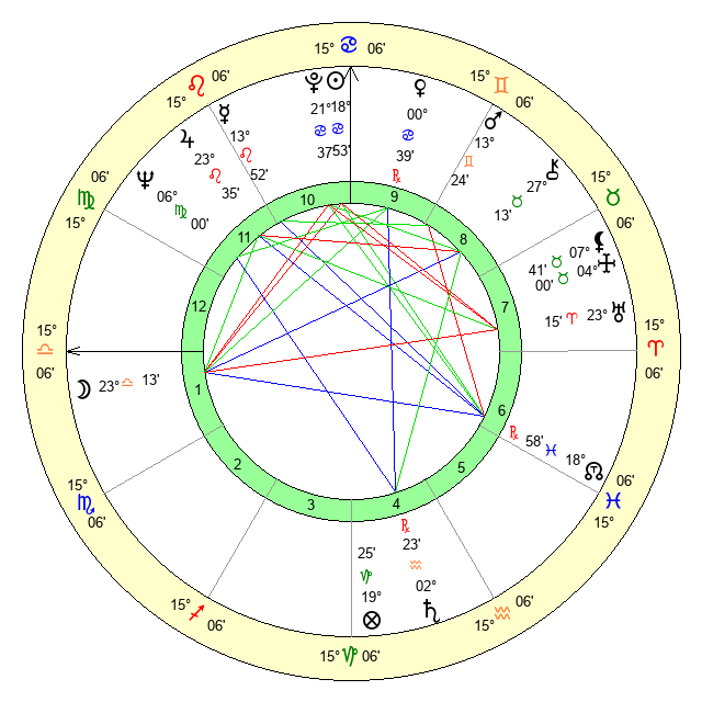 | Moon | 23 Libra 14 | 26 Capricorn 39 | 25 Pisces 32 |