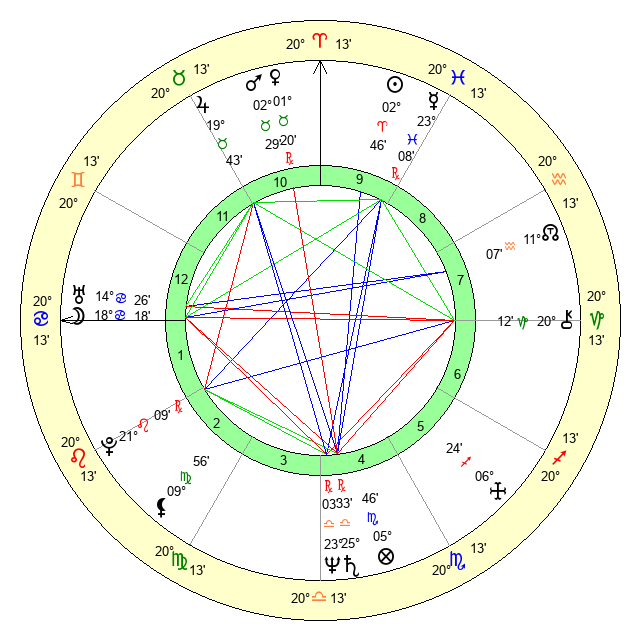 | Moon | 18 Cancer 22 | 17 Capricorn 33 | 29 Aquarius 16 |