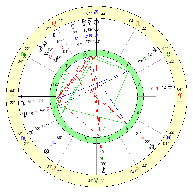 | Moon | 22 Leo 33 | 22 Cancer 20 | 3 Taurus 38 |