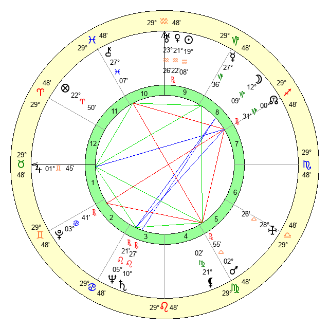 | Neptune | 5 Leo 21 | 28 Pisces 12 | 4 Leo 46 |