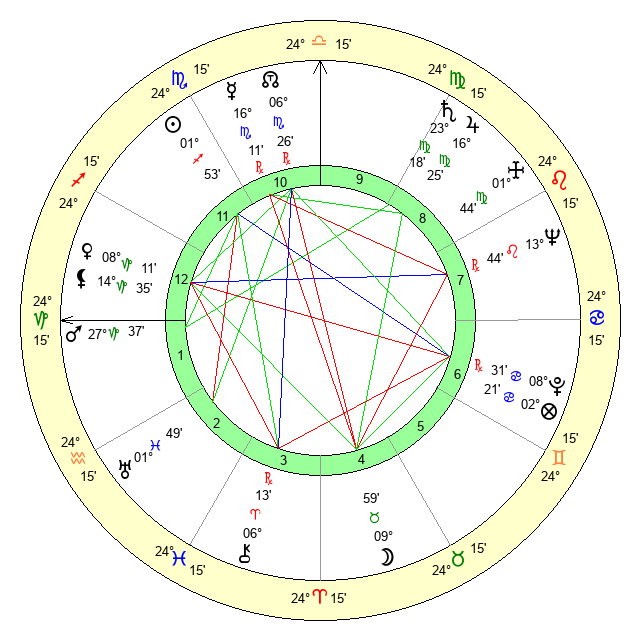 | Saturn | 23 Virgo 58 | 25 Pisces 4 | 22 Virgo 26 |