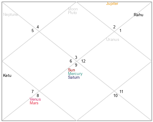 | Rahu | 9 Taurus 44 | 12 Pisces 58 | 4 Taurus 39 |