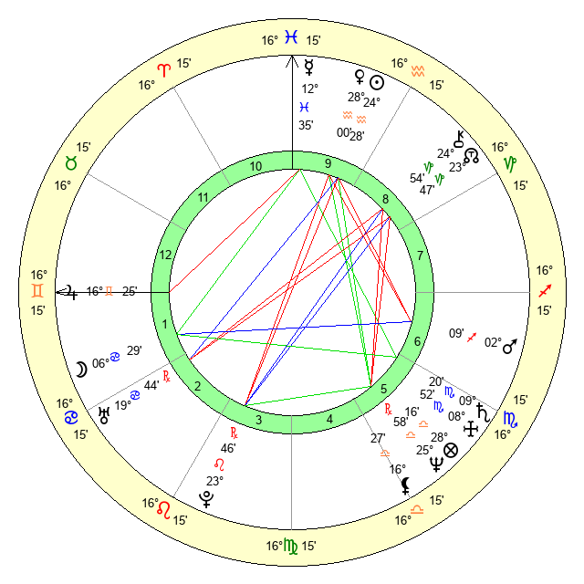 | Saturn | 9 Scorpio 51 | 18 Pisces 47 | 6 Scorpio 41 |