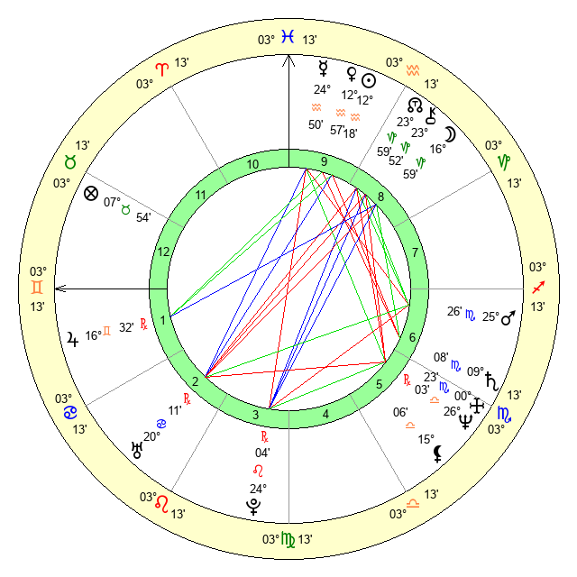 | Moon | 17 Capricorn 0 | 25 Pisces 0 | 3 Virgo 27 |