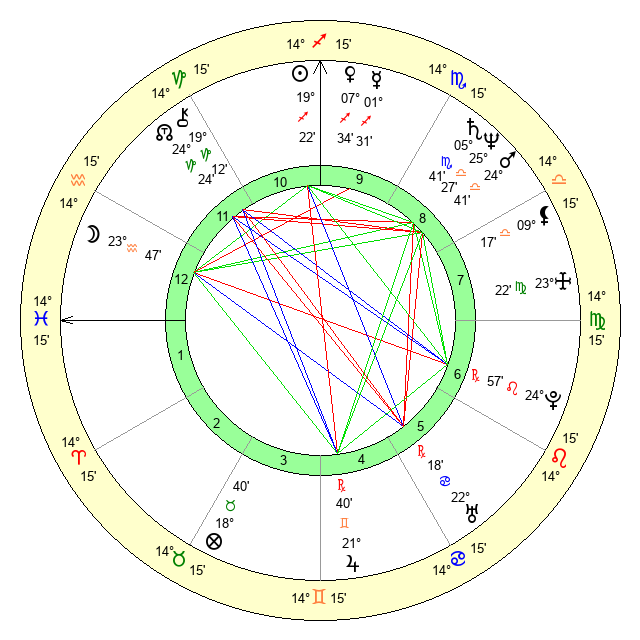 | Moon | 23 Aquarius 46 | 18 Virgo 1 | 15 Libra 43 |