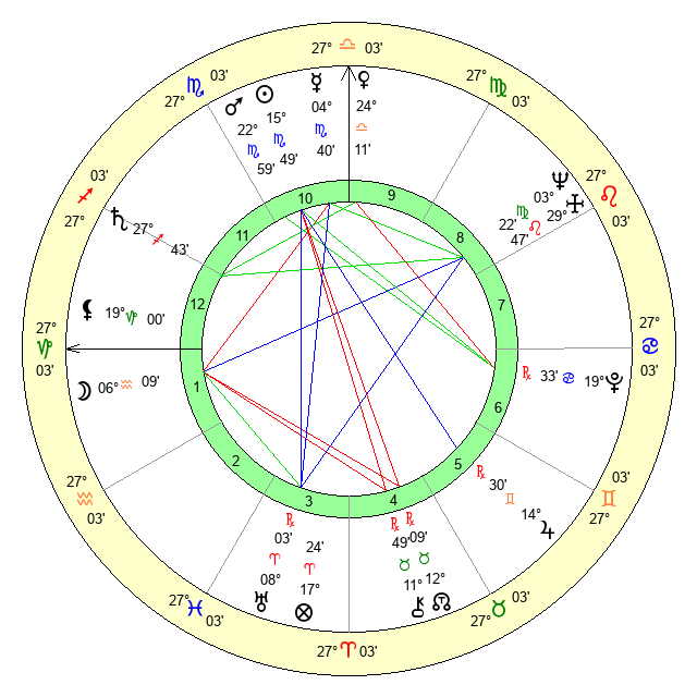 | Neptune | 3 Virgo 23 | 29 Pisces 38 | 2 Virgo 27 |