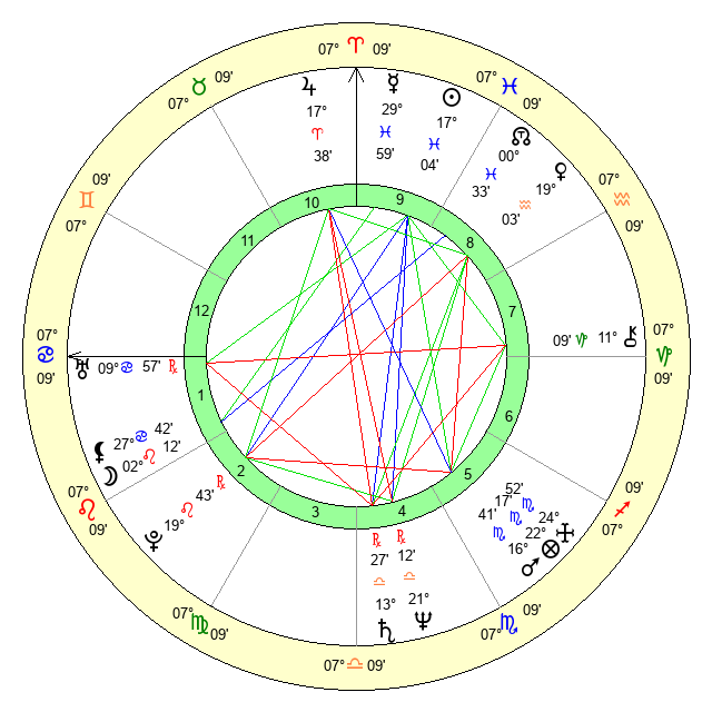 | Mars | 16 Scorpio 40 | 17 Cancer 49 | 4 Scorpio 12 |