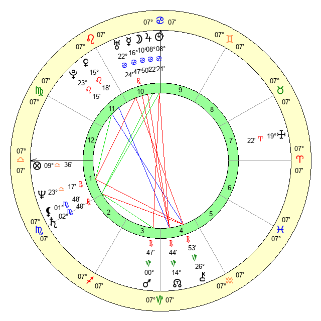 | Sun | 8 Cancer 21 | 9 Cancer 9 | 16 Virgo 28 |