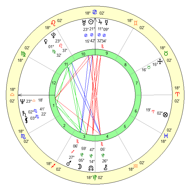 | Sun | 21 Cancer 42 | 22 Cancer 30 | 0 Libra 7 |