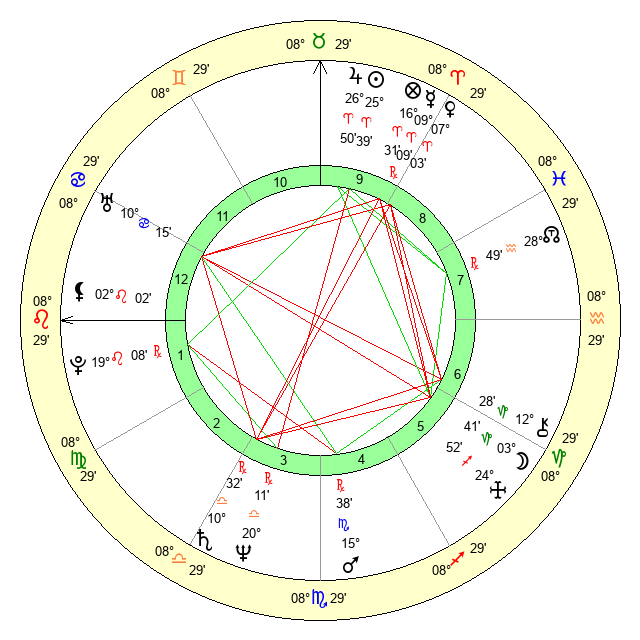 | Pluto | 19 Leo 8 | 3 Aquarius 43 | 19 Leo 49 |