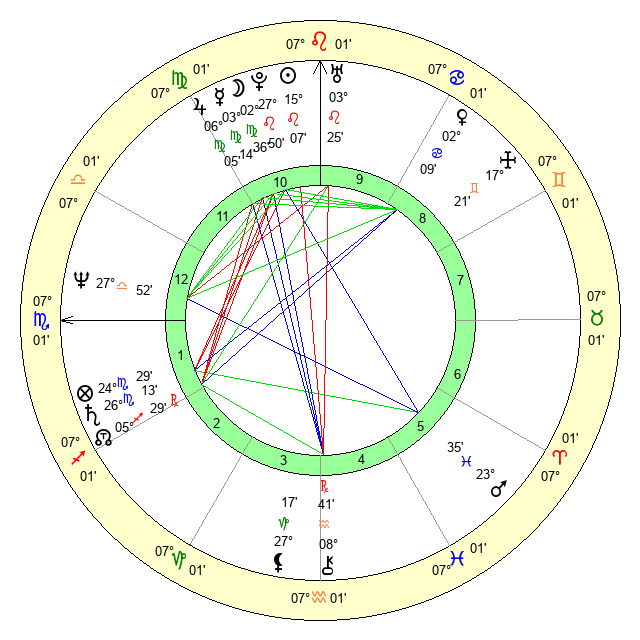 | Moon | 2 Virgo 36 | 25 Capricorn 29 | 5 Pisces 23 |