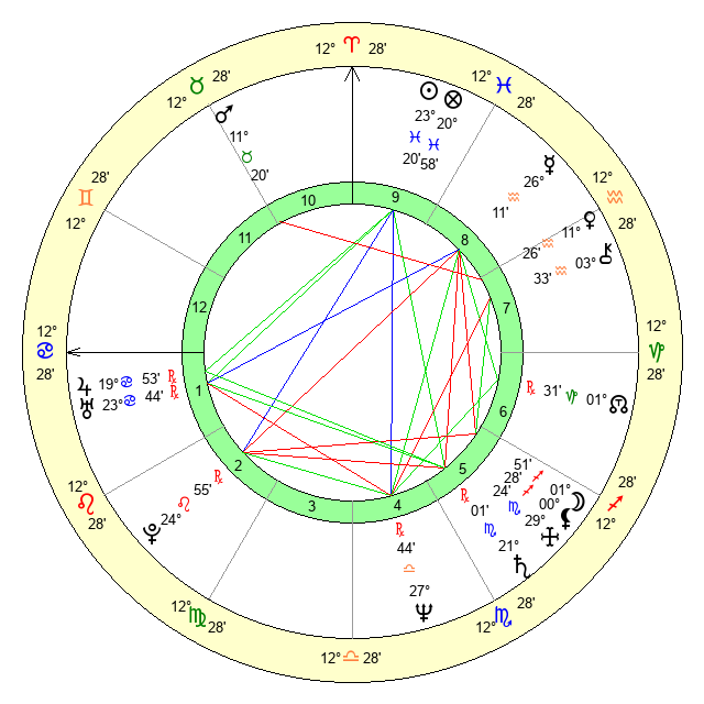 | Neptune | 27 Libra 44 | 29 Pisces 24 | 25 Libra 58 |