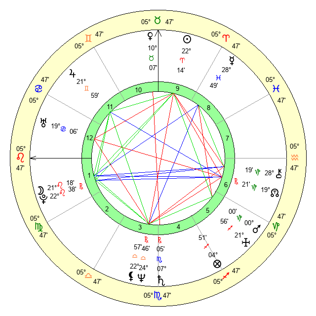 | Moon | 21 Leo 18 | 19 Libra 36 | 16 Pisces 7 |