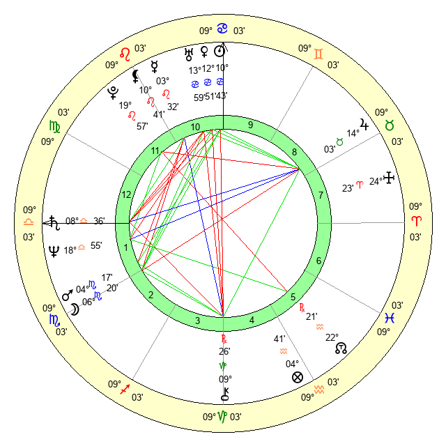 | Moon | 6 Scorpio 12 | 9 Libra 59 | 19 Cancer 55 |