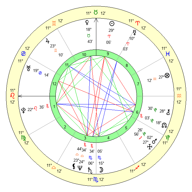 | Venus | 18 Taurus 44 | 25 Pisces 29 | 14 Leo 8 |