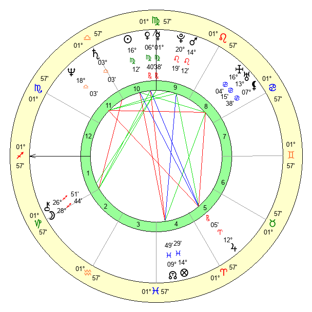 | Sun | 16 Virgo 12 | 17 Virgo 16 | 29 Scorpio 35 |