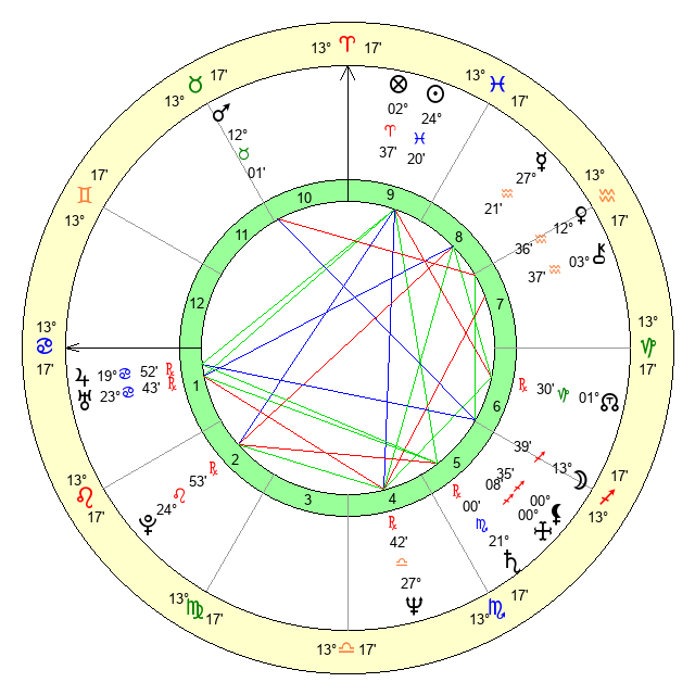 | Moon | 13 Sagittarius 31 | 10 Libra 51 | 12 Cancer 37 |