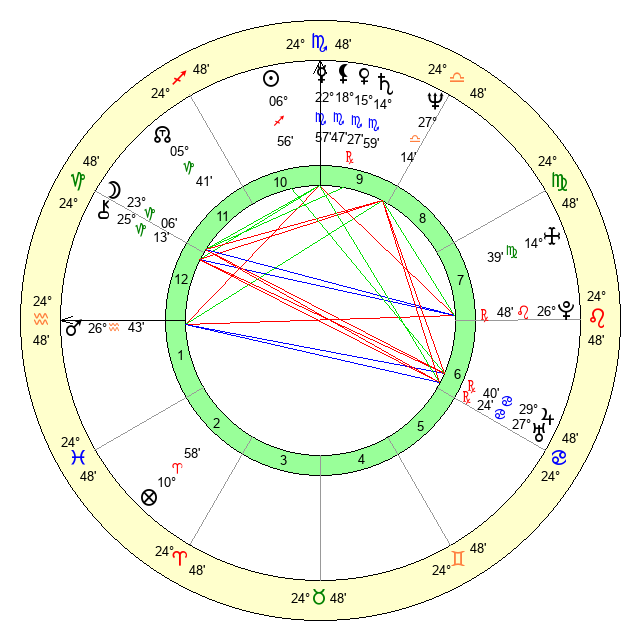 | Moon | 23 Capricorn 10 | 25 Pisces 25 | 9 Virgo 37 |