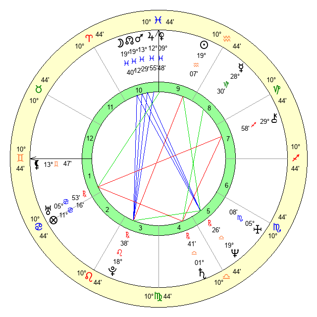 | Moon | 19 Pisces 37 | 3 Cancer 23 | 27 Scorpio 41 |