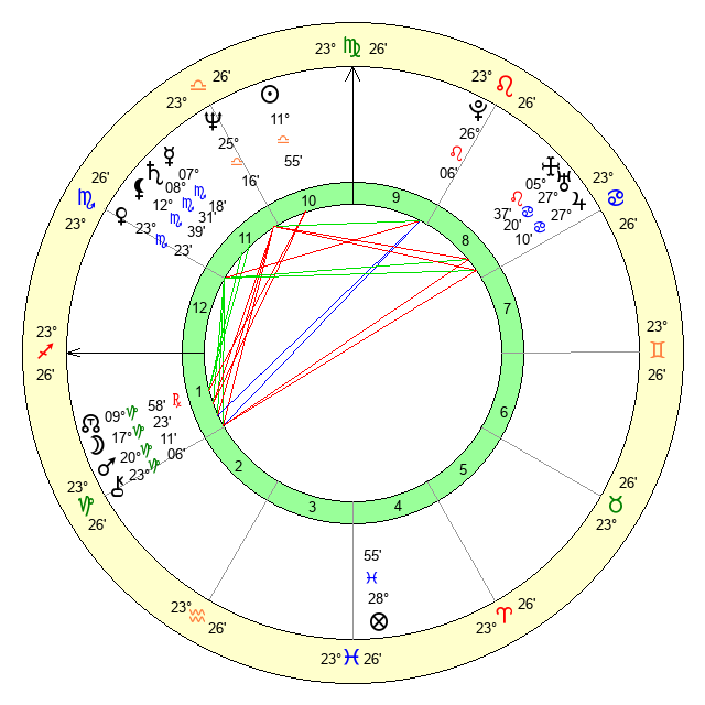 | Venus | 23 Scorpio 22 | 19 Virgo 52 | 16 Scorpio 29 |
