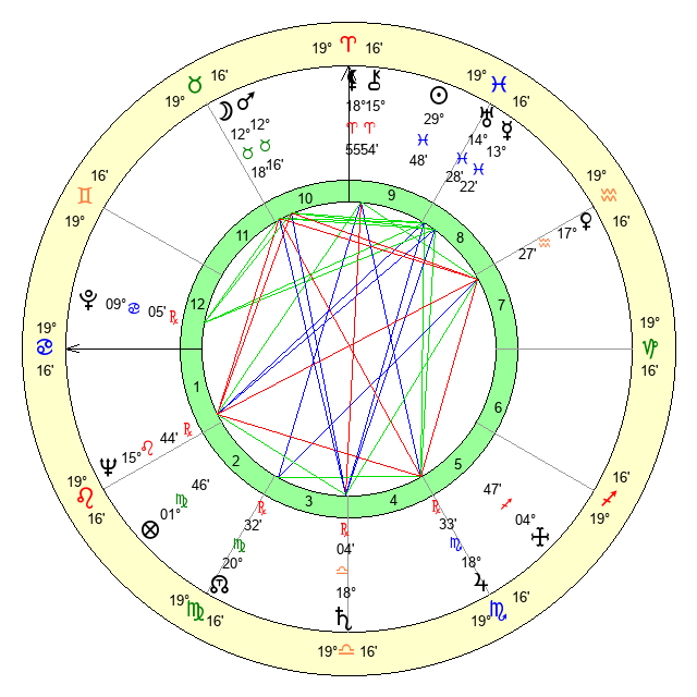 | Moon | 12 Taurus 16 | 19 Sagittarius 16 | 15 Aquarius 44 |