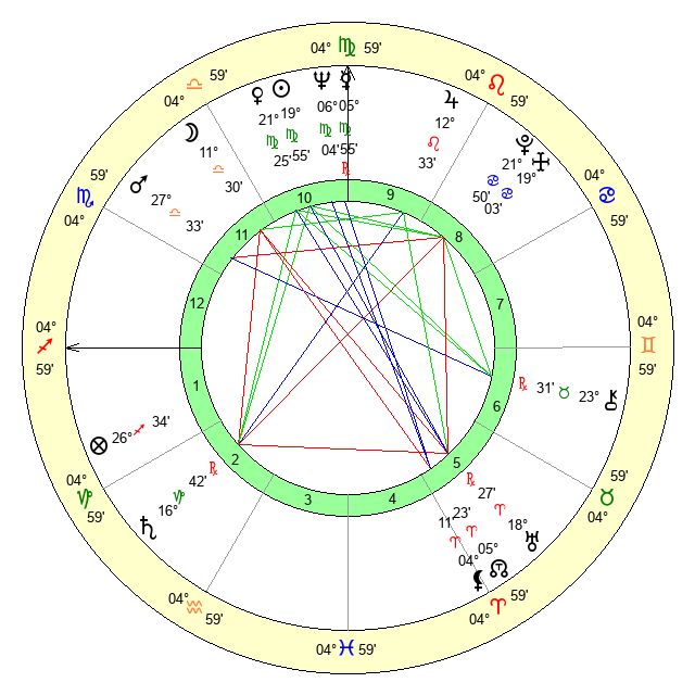 | Moon | 11 Libra 23 | 11 Gemini 23 | 21 Pisces 16 |