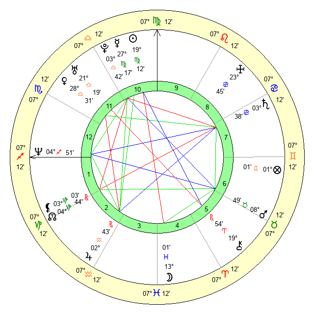 | Neptune | 4 Sagittarius 50 | 1 Aries 3 | 6 Sagittarius 11 |