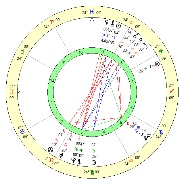| Jupiter | 22 Aquarius 28 | 11 Gemini 46 | 5 Pisces 58 |