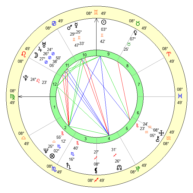| Sun | 3 Gemini 42 | 4 Gemini 44 | 10 Leo 34 |