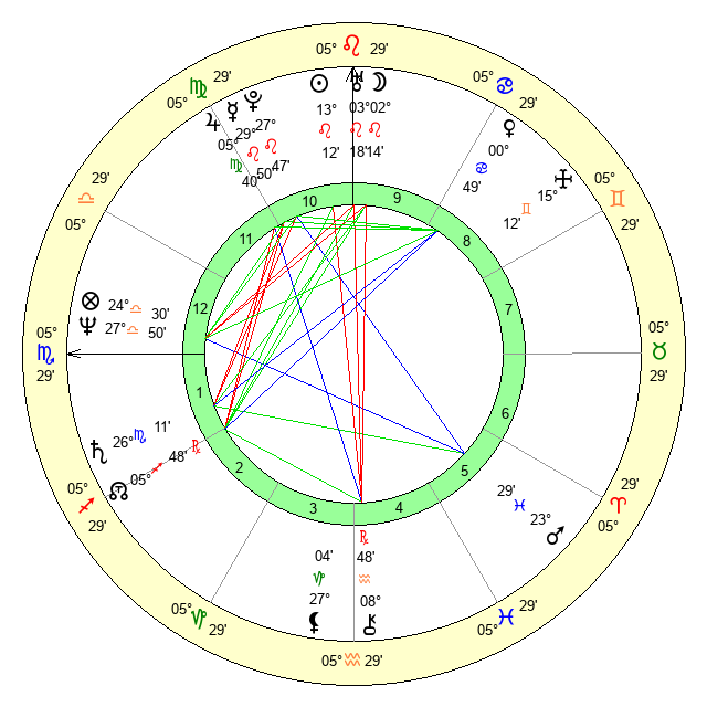 | Pluto | 27 Leo 46 | 2 Aquarius 18 | 29 Leo 51 |