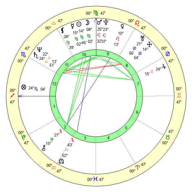 | Sun | 14 Virgo 45 | 15 Virgo 19 | 26 Scorpio 4 |