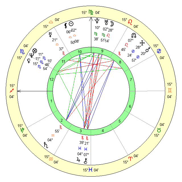 | Venus | 15 Scorpio 54 | 7 Virgo 34 | 12 Scorpio 53 |