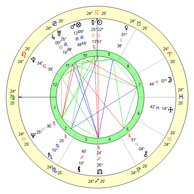 | Mercury | 25 Gemini 13 | 11 Cancer 4 | 16 Virgo 14 |