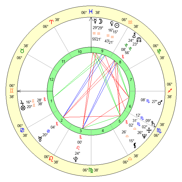 | Sun | 15 Aquarius 21 | 16 Aquarius 8 | 26 Aries 10 |