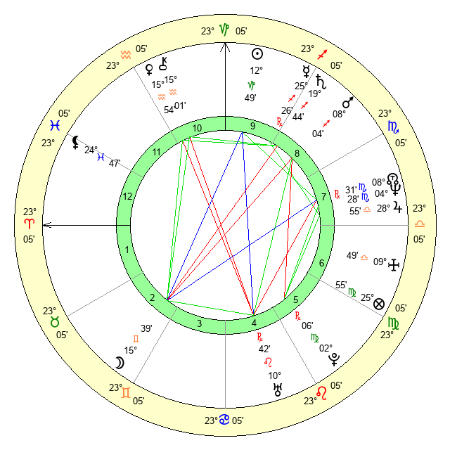 | Pluto | 2 Virgo 5 | 2 Aquarius 48 | 0 Virgo 33 |
