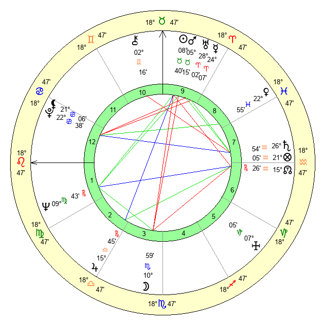 | Mars | 5 Taurus 16 | 5 Leo 0 | 9 Cancer 14 |